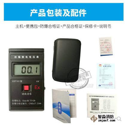 用本表能迅速檢測一些防靜電產品的性能。用尼龍或塑料薄膜摩擦待檢測的紡織品(如工作服、布料)、地板、地毯、工作臺、包裝箱、泡沫、塑料管元件盒等表面,用EST101防爆靜電電壓表測量待檢測物體的表面電位,如果其表面電位越低(或下降越快),則其防靜電性能越好,否則防靜電性能不好。