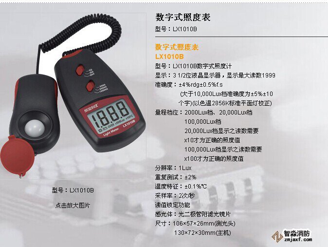 數(shù)字照度計量程不小于2000lx;精度:±5%測量消防應(yīng)急照明設(shè)施的照度值是否符合規(guī)范要求