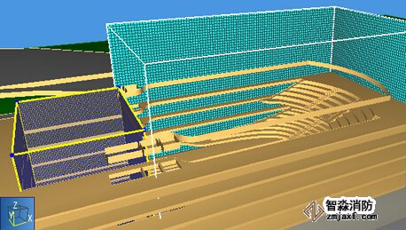 -PyroSim提供的模型建立主要為建立網(wǎng)格、材料定義等過(guò)程,然后得到一個(gè)完整正確的消防模擬模型。
