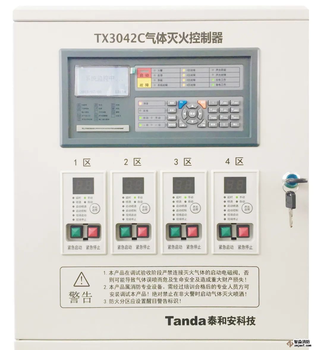 氣體滅火控制器專用于氣體滅火控制系統中,集自動探測、報警、滅火為一體的控制器,氣體滅火控制器可以連接感煙、感溫火災探測器,緊急啟停按鈕,氣體噴灑指示燈,聲光警報器等設備,并且提供驅動電磁閥的接口,用于啟動氣體滅火設備,是氣體滅火控制系統的重要組成部分。下面主要介紹泰和安氣體滅火控制器TX3042C、TX3045的功能特點: